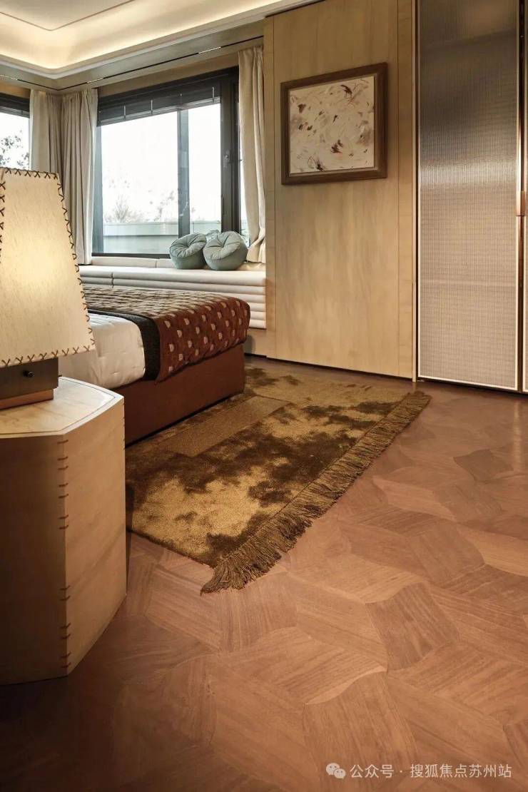 卧室地板也不是简单横拼竖拼,而是主卧采用复杂的树叶拼,保利明知这种拼法成本更高、耗材更多,但依然坚持,为的就是给予业主更美观的享受。