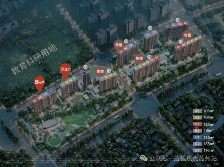 本次是项目的收官之作,推出西3#、西4#,建面约104-135㎡的3-4房,共计128套