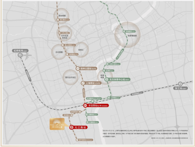 另外,通过15号线5站到景洪路站(原华泾西站),可换乘机场联络线(在建,年底通车),向西2站到虹桥,向东2站到张江;同样换乘19号线(在建),4站到前滩。