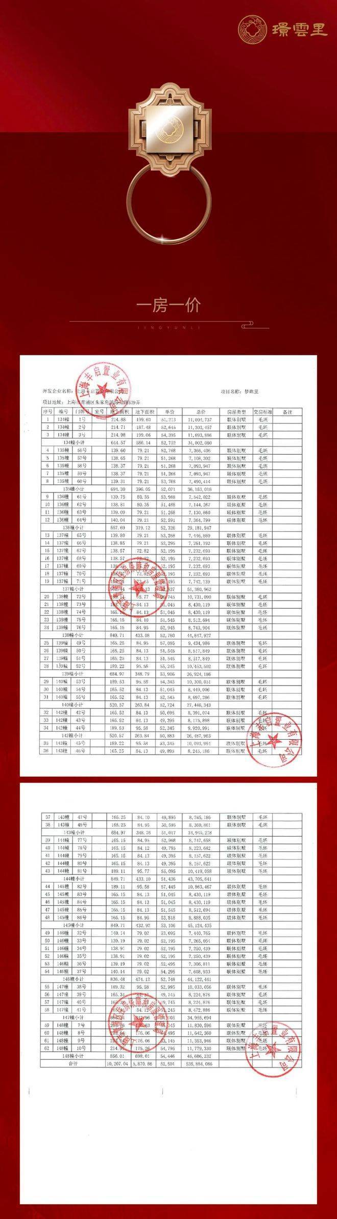 过会均价52501元/㎡,总价709万起