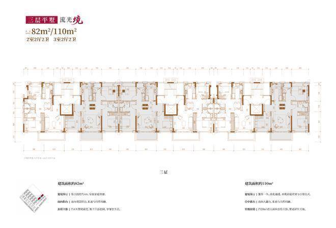 建面约82㎡2房2厅2卫/110㎡3房2厅2卫(三层上叠):