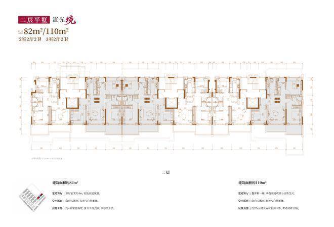 建面约82㎡2房2厅2卫/110㎡3房2厅2卫(四层上叠):