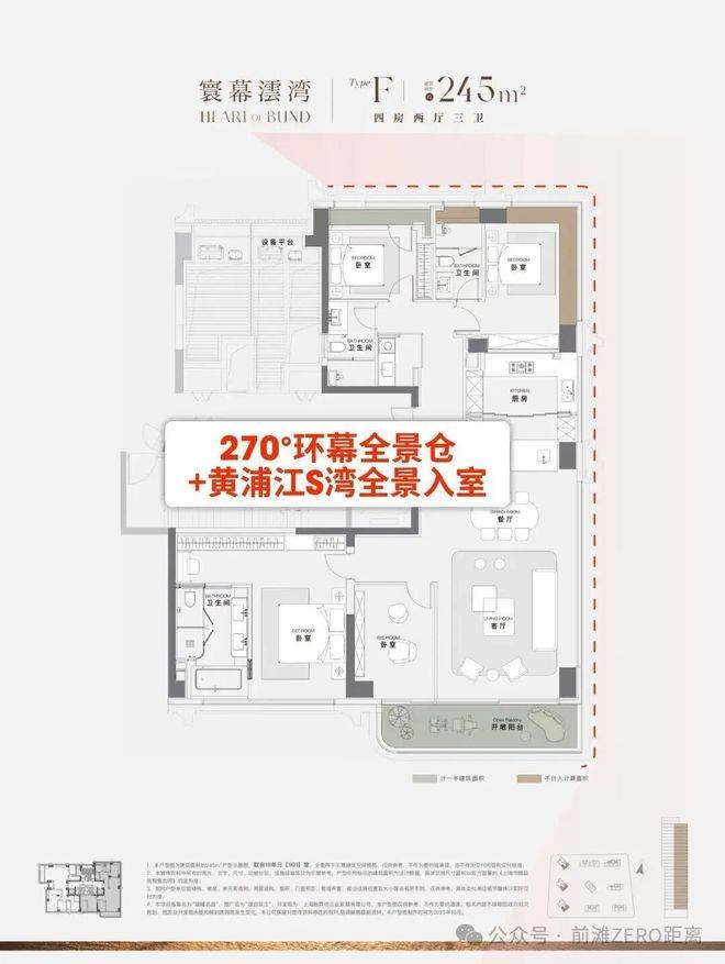 项目的滨江大户型,以无界平层结构,配合3.3米层高(部分)和全景落地窗打造270°环幕江景舱,实现上海滨江市场罕见的IMAX环幕江景视野。