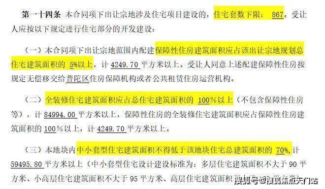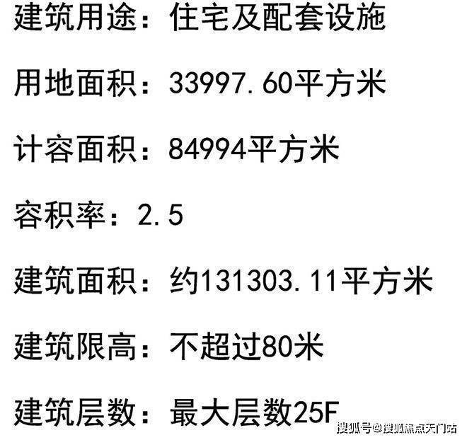 地块用地性质为普通商品房,容积率约2.5,限高80米,住宅套数下限867套,需配建5%以上保障性住房,中小套户型不得低于70%,全装修比例100%!
