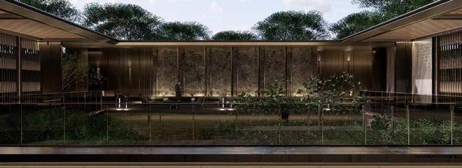 第五重:下沉庭院打造一体式景观,墙面流水至地面,结合水中花池营造出纯粹的自然之境。