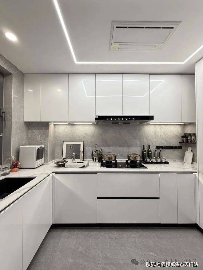 厨房空间,甄选西门子新款的抽油烟机、灶具、洗碗机等,甚至连大部分项目不配备的冰箱也是交付标准;还特别配置了轨道插座、前端净水器和凉霸;吊轨金属玻璃移门,既美观又方便清理。