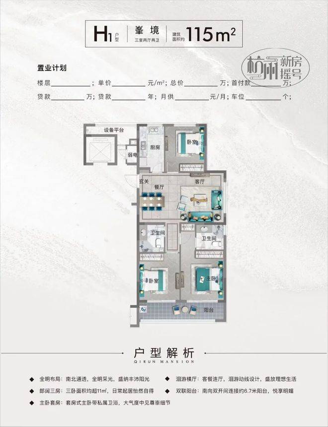 ◆奢阔三房:方正格局阔尺进深,演绎明媚通透的理想生活