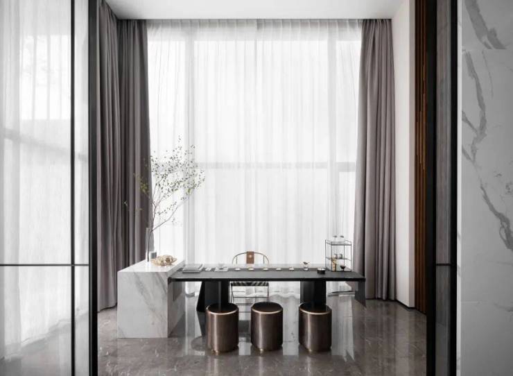 踏足地下室,怡然自得的氛围中,氤氲着浓郁的人文气息。一缕暖阳照入室内,一杯清茶已经沏好,在这难得的惬意时光,陶醉于如此慢煮生活。细腻的皮革与硬朗的金属相互衬托,精美摆饰的点缀,丰富肌理质感。拾一本书、听一段音乐、亦或对弈一番,在深浅疏密的时光里,静悟空间轻吟美妙韵律。