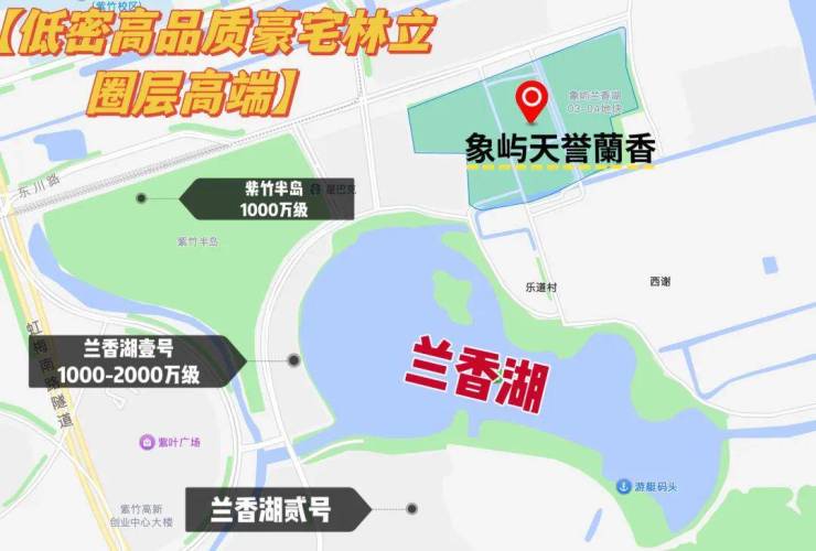 首先,这里本身就是高净值富人的聚集地,圈层纯粹。围绕兰香湖打造的兰香湖国际社区,汇聚紫竹半岛、兰香湖壹号、兰香湖贰号等多座低密高品质豪宅。
