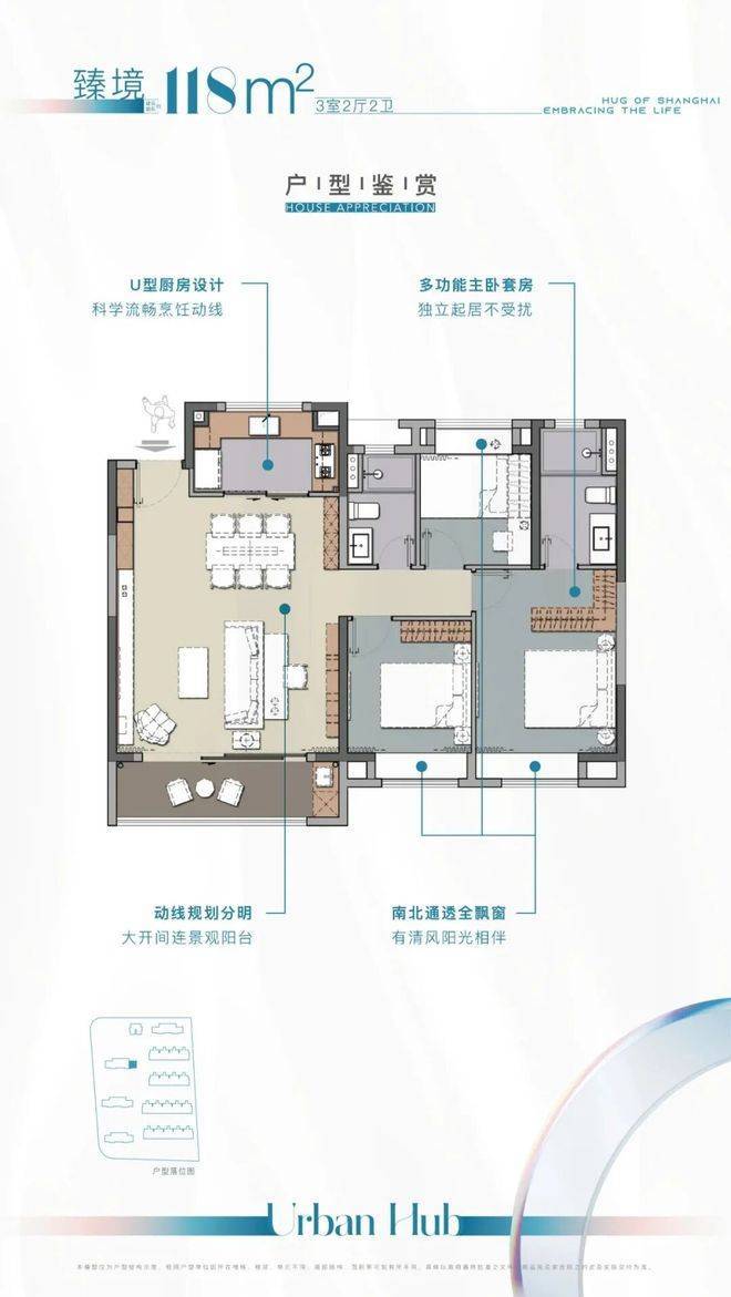 整个区域以九宫格的布局展开,涵盖了住宅+商业+教育配套,项目继承经典海派的建筑风格,通过外立面层次的打造和立面细节的打磨,使得小区外观更有现代感。