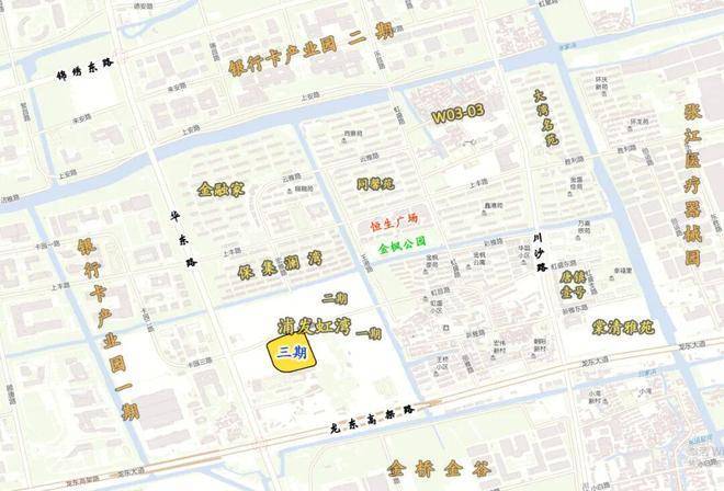 浦发虹湾,位于龙东大道和华东路的交汇处,所处的整个区域,四面环水,就如同一座漂浮在水面上的“环屿之城”。