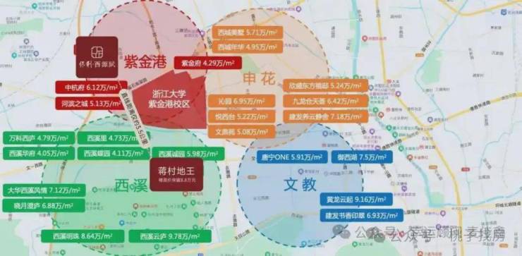 项目直线距离约1.5公里处就是一流名校浙江大学,由此衍生出西湖科技园、紫金创业园、云谷小镇等创新策源区,集合准独角兽企业有约300多家,已有企业总部约30余家,上市企业约14家……形成“产学研”闭环,是赋能杭州经济发展的强大引擎。(信息来源:杭州城西科创大走廊管理委员会官微)