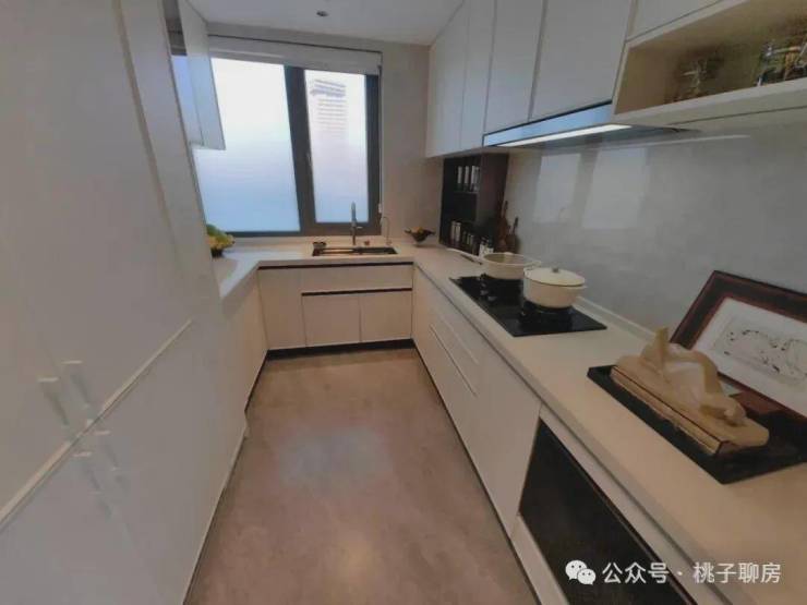 而且,这款户型客厅与次卧能打通,作为一个大公区,加上开放式厨房,空间一体化的奢阔感更足。