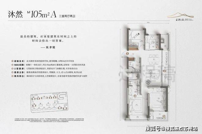 建面约105m²的户型有近6m的纯屏巨幅玻璃,大大提升了采光和观景的需求,“起床就能看到风景”。