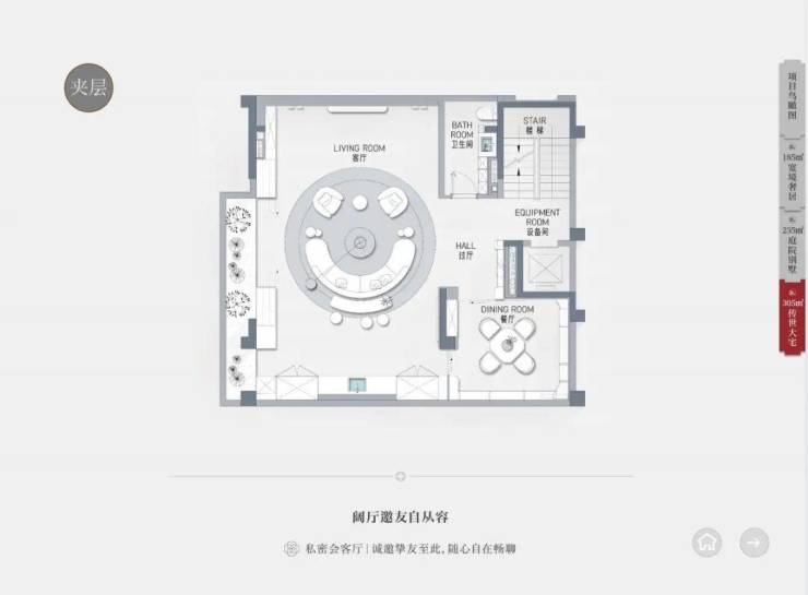会所内则涵盖健身房+冥想空间+桑拿区+棋牌室等功能。为业主的社交提供场所,为业主的日常休闲提供服务!