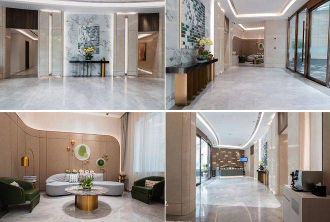 内部公区,从入户大堂,到电梯间再到售楼处,色彩明亮,大气恢弘,品质感十足的同时,充分彰显业主的品位。