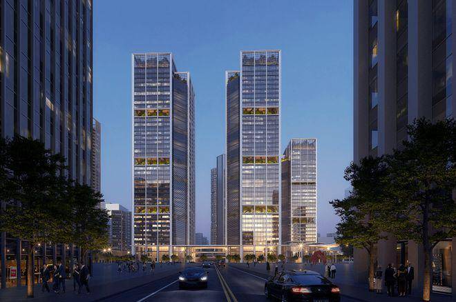 总建面近50万㎡的超级大社区。由7栋最高约200米的建筑组成,包括超甲级写字楼、无界空间和互联网总部大楼。约50万方呈现东静西动的震撼布局,把更好位置留给了居住生活,把繁华汇于西面,无边界的超级大堂,则将业态相互连接,让业主从容往来。