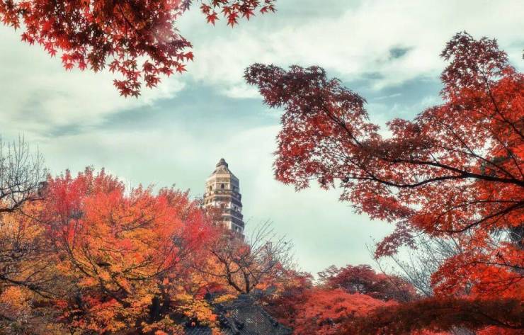 若说江南风景之胜,莫若虎丘之飒,姑苏素有“先见虎丘塔,后见苏州城"的俗语。初冬的虎丘,层林浸染,枫叶交叠,粗粗描摹便已勾勒出一幅绚丽的景色。