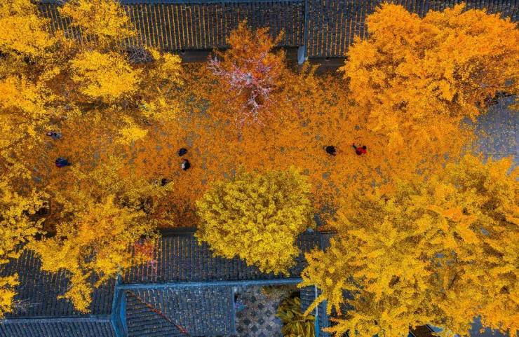 抱“浙江银杏王”:唐代古树,23米高,金庸《书剑恩仇录》提过。