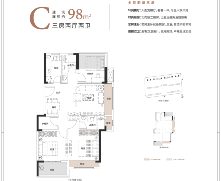 新天地·熙照华庭,深研理想家庭的居家范本,以阔绰的空间尺度,合理规划、精确布局,打造约88-108㎡温馨实用的三房双卫空间,让生活增添更多的新“享”法。