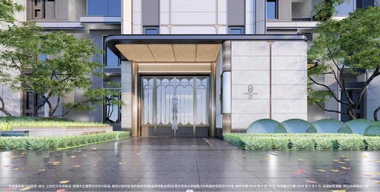 门庭入口处香樟破顶而出,是自然与都市的互融共生,是归家心绪的符号转场,更是质感生活家族如樾的心念日常。