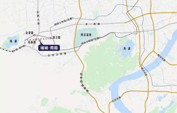 瑞城熙园坐落于杭州未来科技城核心居住区,毗邻规划中的世界级中轴线,仅2公里之遥,半小时生活圈汇集江南时代购物中心、亲橙里、西溪印象城、海港城等商业配套,精粹繁华配套,成就城市人居新品质。更有3轨交通近距依傍,约500米地铁3号线(在建)/5号线绿汀路站,16号线凤新路站,畅行无阻。