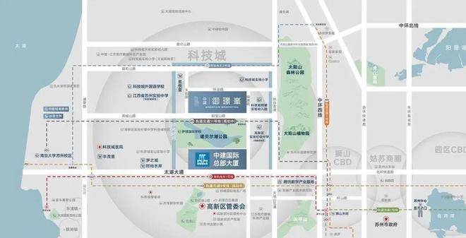 占位苏州“一城四核”发展战略发展核心,对标全球一流数字经济创新区的发展路径。科技城吸引百余家大院大所入驻,大阳山将建成腾讯数字产业基地等产业集群。诺贝尔湖公园、恩顾山公园、小茅山公园、彩石湖公园、大阳山国家森林公园、太湖湿地公园稀贵资源荟聚于此,矜贵土地,与生俱来。