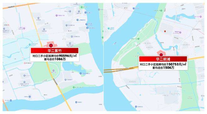华二前滩的对口小区目前的挂牌均价超过15万/㎡,套均总价1500万朝上!