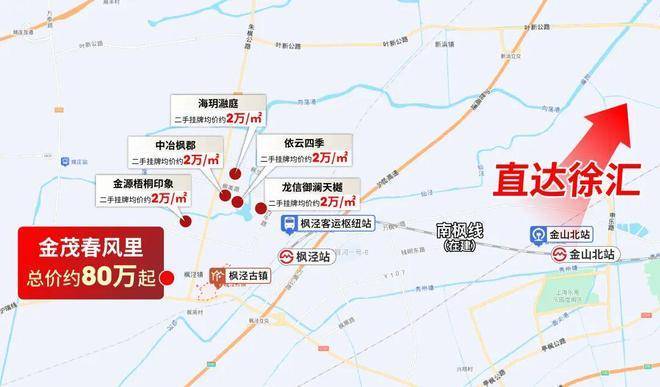 不过凭借一步上海的地理位置,项目通勤上海市区非常方便,公共交通方面,可以在枫泾客运站坐公交车,可以在南枫线枫泾站坐地铁(在建中),也可以在金山北站坐高铁直达徐汇。