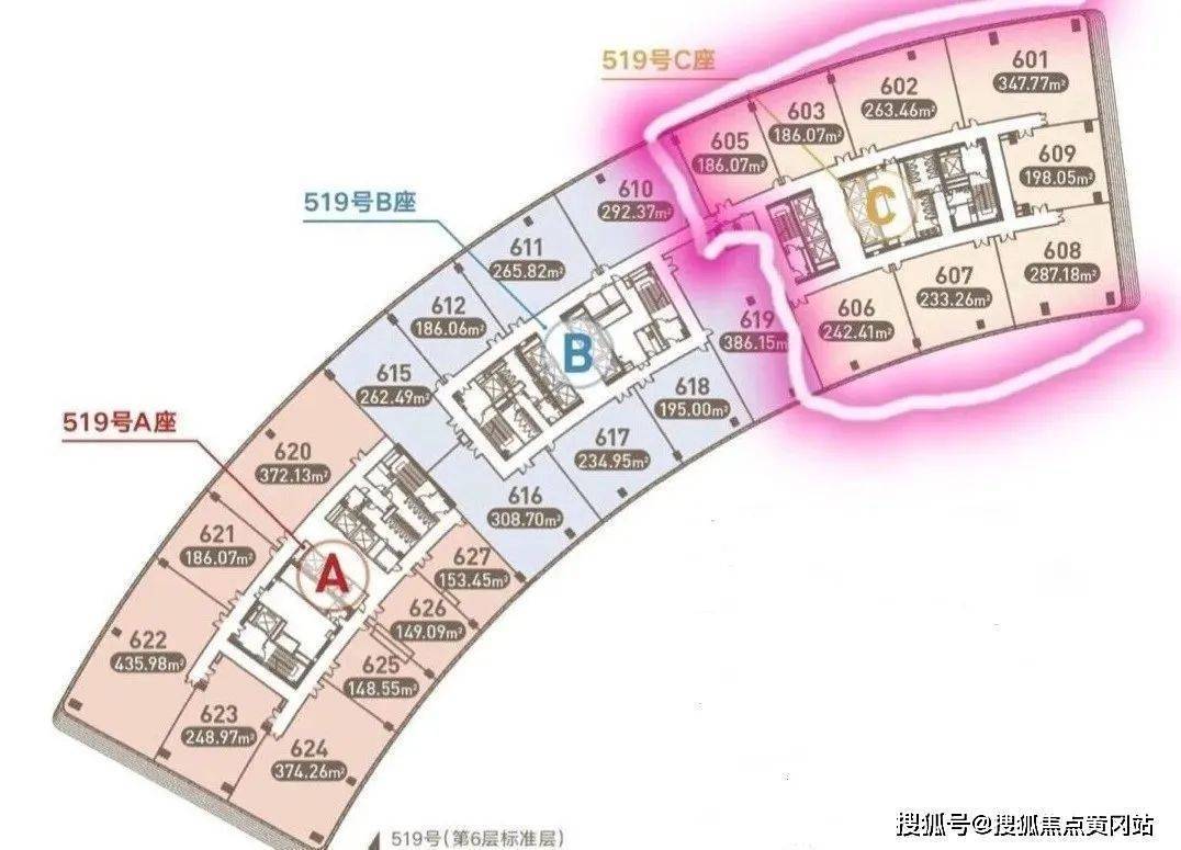设计公司:Gensler(上海中心统一团队),双挑空大堂(1层480㎡,3层1400㎡,层高均10.8米),得房率约68.8%。