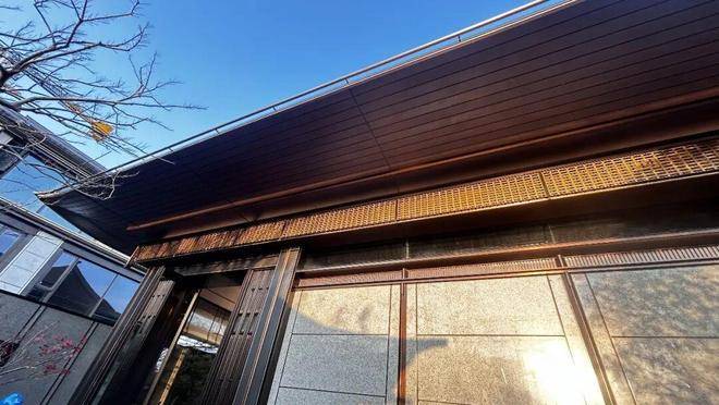 为确保屋面横瓦、檐口不锈钢和檐口吊顶木纹铝板这三种材料的弧度完全一致,组织工厂技术人员进行现场交底,在加工过程中对各材料的弧度进行精确测量与比对,保证最终安装时三者能够完美契合,呈现出整齐划一、流畅自然的视觉效果。