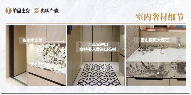 项目不惜成本,严选十余种珍贵奢石与臻质材料,外立面、门庭、公区、车库、室内等多重空间,皆以奢材精心雕琢。