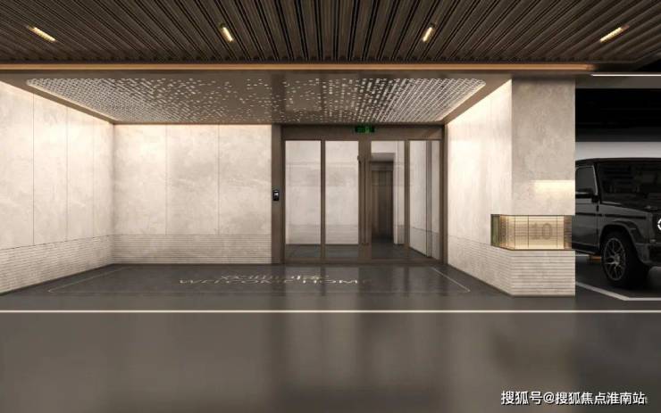 整座大堂外墙采用伯爵灰大理石满铺高墙,电动门镶嵌宝格绿奢石,实现无感通行;