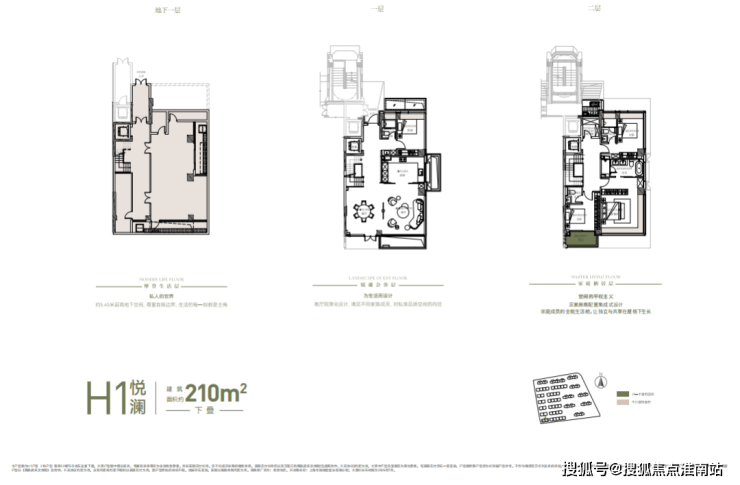 建面约182㎡下叠:庭院+地下室(含夹层)+阳台的整体附赠空间约210㎡;