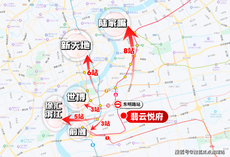 3站前滩/世博、5站徐汇滨江、6站新天地/世纪大道、8站南京西路/陆家嘴。