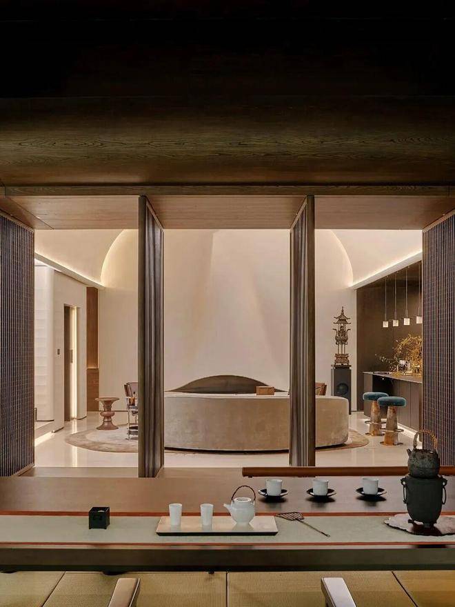 在杭州溪径恒庐,SPA水疗、私人影院等高配功能被巧妙融入,却不显刻意与堆砌,尽显孙建亚的巧思。