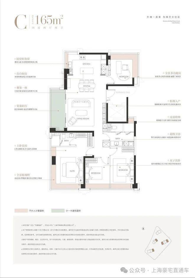 建面约165㎡4房: