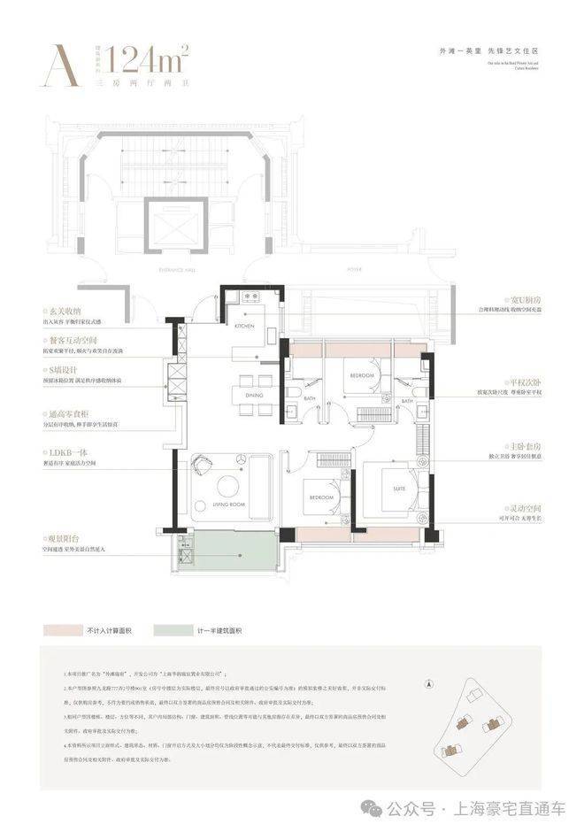建面约124㎡3房:
