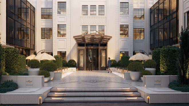 南北酒店式归家入口,南侧入口结合保留风貌建筑,风貌庭院式设计,给到满满的归家仪式感。