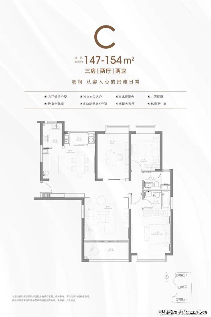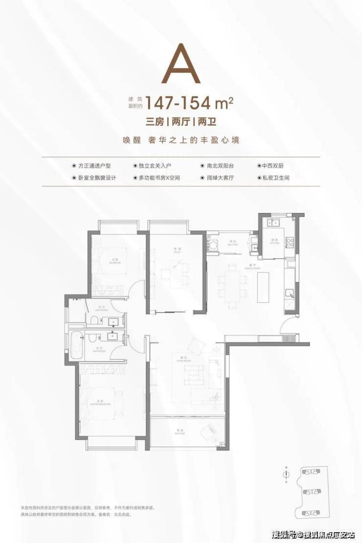 建筑面积约134-154㎡精装3房