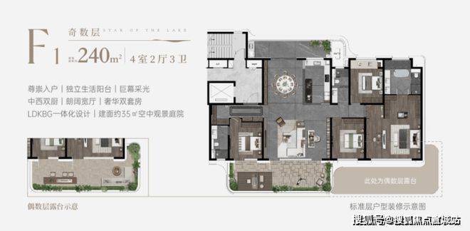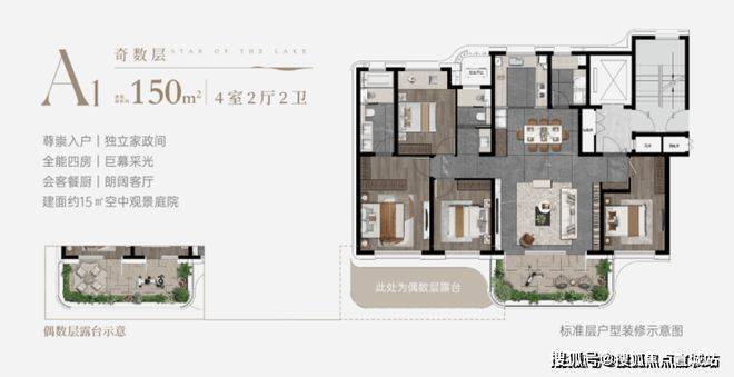稀缺组合:项目打造湖居与四代宅的双重稀缺组合,规划建面约150㎡-240㎡的低密奢阔大平层,是板块内首个湖居四代宅产品,实际使用得房率高达约100%。