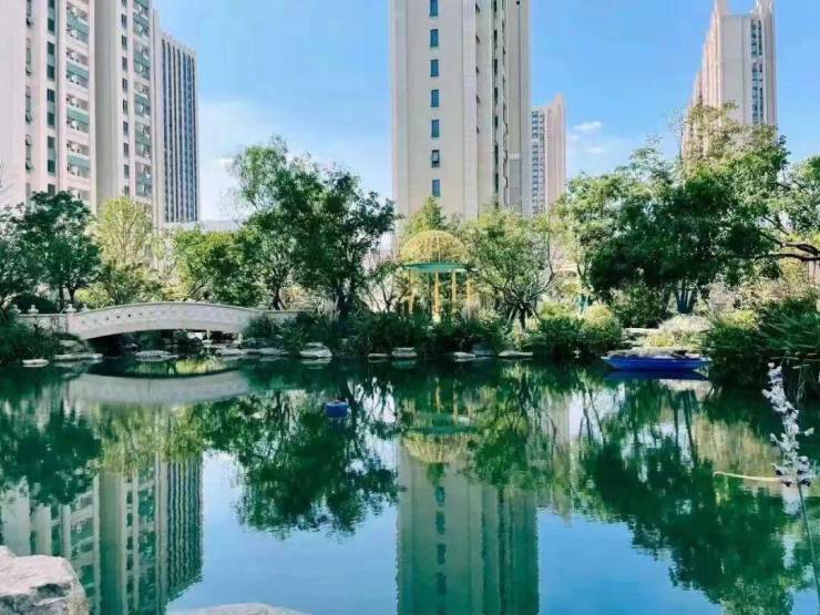 60%的超高绿化率,整个小区灵感来自于纽约中央公园,同时融入了江南园林淡雅内敛的风格精华,在顺应原本地貌的基础上,打造一心九轴的高品质景观。