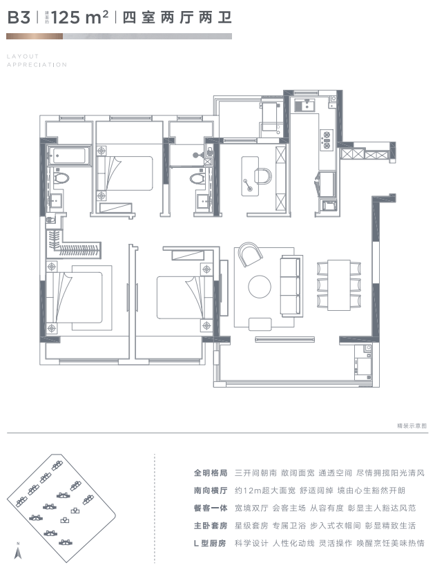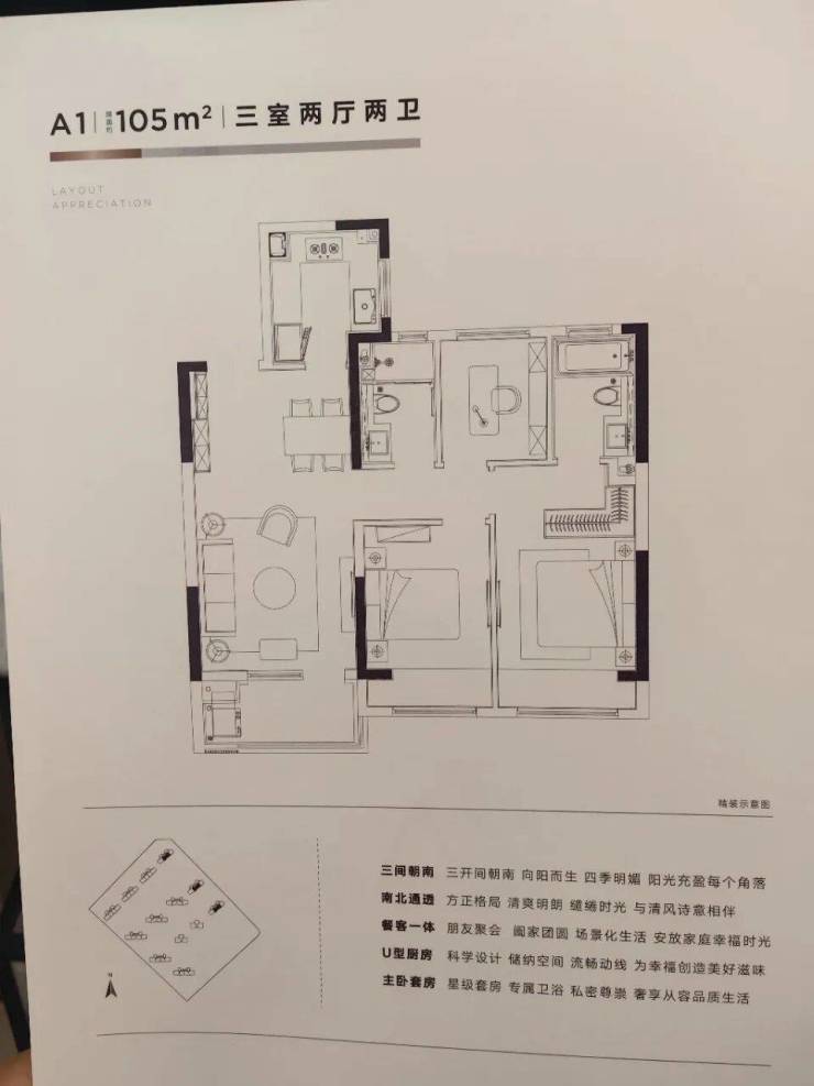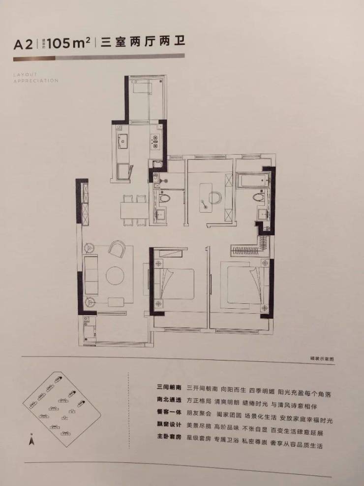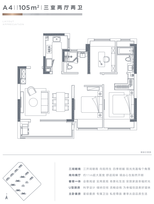 产品:17-26F高层住宅;建面约105㎡、125㎡、135㎡