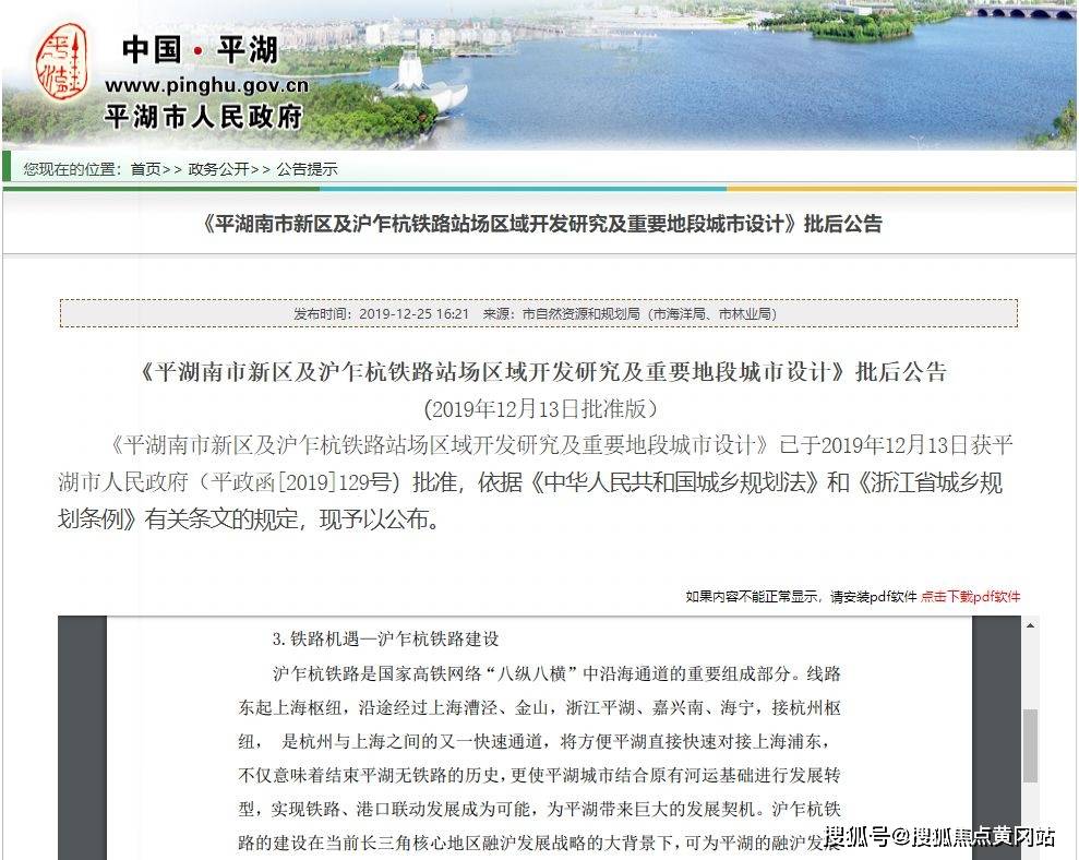 沪乍杭高铁(在建)是国家高铁网络“八纵八横”中沿海通道的重要组成部分,2019年12月25日,平湖市官网发布了一则《平湖南市新区及沪乍杭铁路站场区域开发研究及重要地段城市设计》的批复公告。公告里称“线路东起上海枢纽,沿途经过上海漕泾、金山,浙江平湖、嘉兴南、海宁,接杭州枢纽,是杭州与上海之间的又一快速通道,将方便平湖直接快速对接上海浦东”,“为平湖带来巨大的发展契机”。