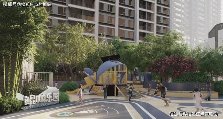 以“鲲鹏乐园”主题儿童乐园、鲲鹏书院、老人颐乐空间、多元艺术花园、约760m“汽车文化”主题跑道、森林漫步道等共享场域为居者构筑一个有温度的社区.
