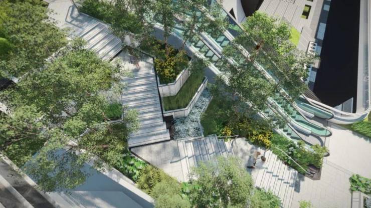 除南侧无敌城市视野外,楼王北侧与3#楼间距约60米,享奢阔栋距,同时又将森感公园的葱郁树冠纳入窗前画卷,南北景观环绕。值得一提,项目高线公园打造“三大花园·六大游园”体系,提供丰富的体验场景,而在楼王东侧就是三大花园的其中之一,也是艺术感最强的一个花园,将结合艺术装置和台阶,为业主提供舒适闲坐、眺望树冠景观的空中露台。