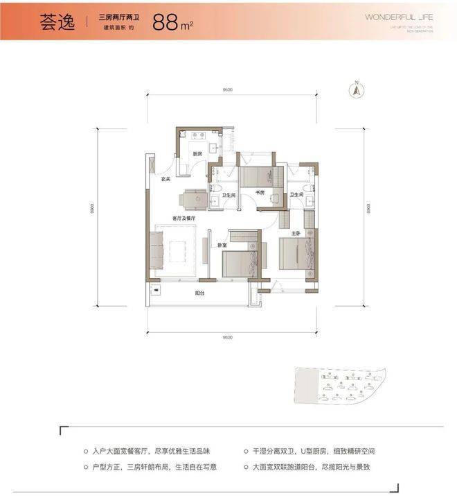 约88㎡3室2厅2卫