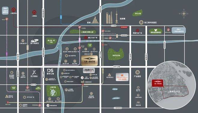 北侧为金汇政府,周边规划超大体量商办集群、文化体育中心,近享达令港公园城市生态绿地。