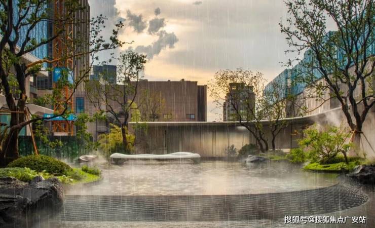 未来,水系穿行于约800㎡的下沉庭院之间,场景之中,水、灯、石、树、墙等等装饰元素有机结合,每一种细节元素背后,都有各自所代表的符号语言。