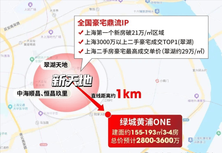 最新消息!老西门「绿城·黄浦ONE」首推建面约155㎡开盘售罄,193㎡4房少量在售!加推建面约155-193㎡3-4房;上期均价约17万/㎡!售楼处线上火热预约中!